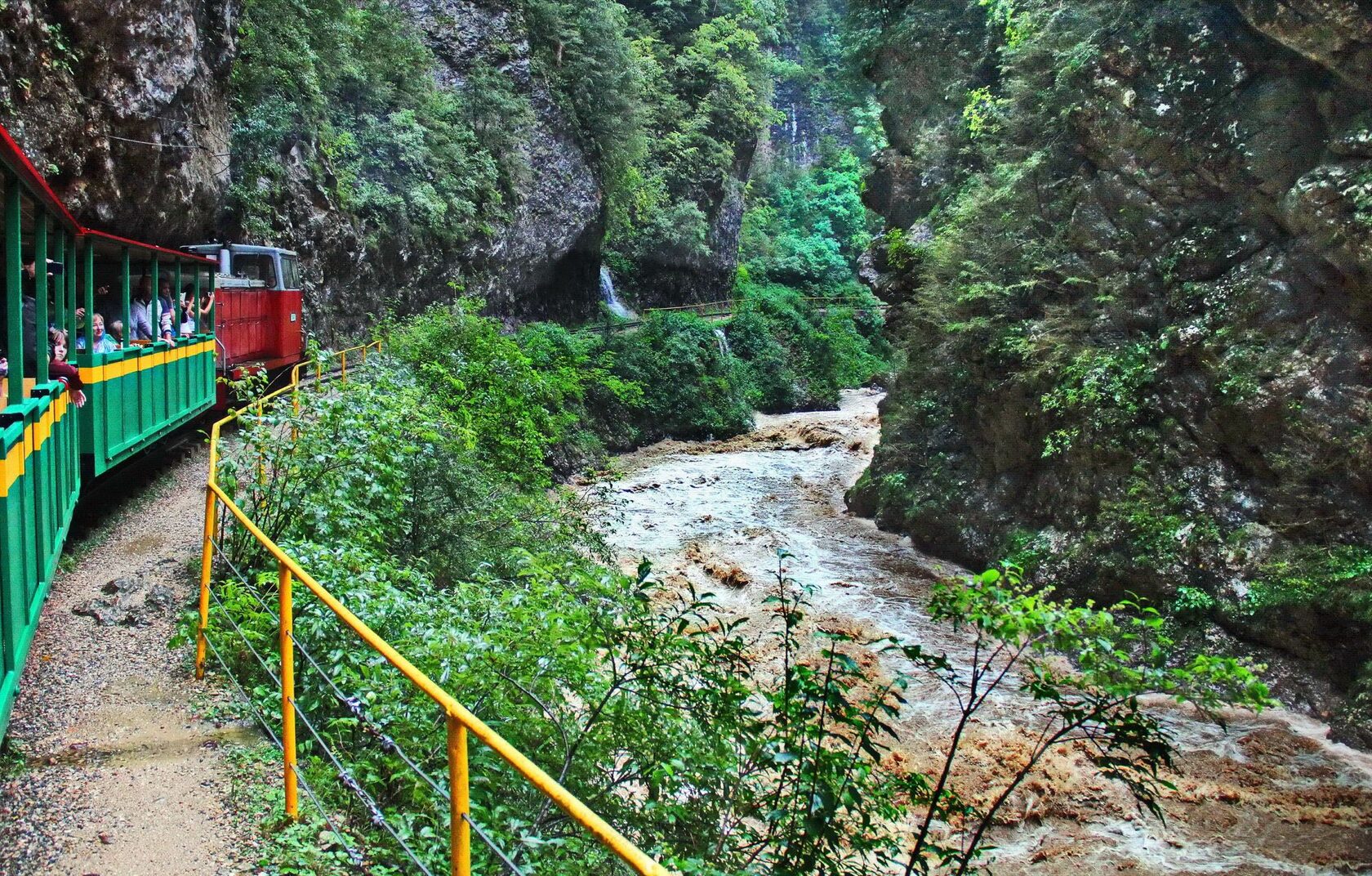 Прогулка на ретропаровозе — старинная узкоколейка проходит вдоль отвесных скал и даёт возможность рассмотреть каньон вблизи, не прикладывая особых усилий.