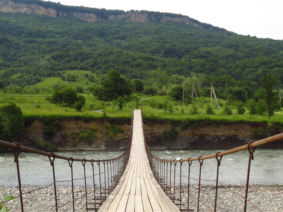 Одна из главных достопримечательностей станицы — знаменитый подвесной мост через реку Белую.